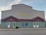 The Prairie Dog Drive-in Theatre, one of five left in Saskatchewan,[36] is located about three kilometres north of town along Highway 9. The drive-in theatre originally opened at that site in 1981 and has gone through several name changes since. The only other big screen in town is a one-screen theatre on the second floor of the Carlyle Memorial Hall in downtown. Unlike the Prairie Dog Theatre, it does not have regular showings and is only open for special events. The other four drive-in theatres include the Jubilee Drive-In Theatre in Manitou Beach, the Clearwater Drive-In in Kyle, the Moonlight Movies Drive-in in Pilot Butte, and the Twilite Drive-In Theater in Wolseley.[37]
