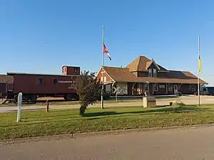 Carlyle sits at the cross-roads of Saskatchewan highways 9 and 13. Of the two original railway lines that went though Carlyle, only one, the CNR line, remains and it carries freight, such as oil and grain. The last passenger train to depart from Carlyle was on 25 August 1959.[18] The other line, CPR, issued notices of discontinuance for the section going from Carlyle to Arcola on 24 March 2000 and from Redvers to Carlyle on 20 July 2004.[19]