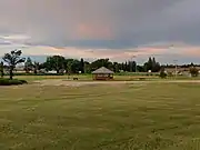In town, there's a 9-hole golf course,[32] Carlyle Sports Arena (CSA), an outdoor swimming pool,[33] curling with four sheets of ice,[34] a motocross track, and a playground. Lions Park in Carlyle has a soccer pitch, six ball diamonds, the aforementioned swimming pool, camping, and walking paths. Centennial Park was established in 2005 to recognise Carlyle's 100-year anniversary. There's a gazebo, time capsule, and a children's splash park, which was added in the spring of 2021. West Park, on the west side of town along Morrison Creek, has a picnic area, gazebo, and, added in 2020, an off-leash dog park.[35] Carlyle was featured on Global Regina's 'Focus Saskatchewan' on 12 January 2014.
