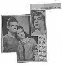 It was Pope's performance as anointed saint Mother Cabrini in the 1947 film Citizen Saint (under her stage name, Carla Dare) that drew the attention of director Elia Kazan.[4] He subsequently cast her as Kim Hunter's understudy in the Broadway production of A Streetcar Named Desire.[5] She was reunited with childhood friend Marlon Brando, who was playing Stanley.