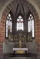 St Anne's Chapel, on the south side, has its own gable roof and two windows with stone tracery. The ceiling vaults bear the coats of arms of Hirschhorn and Handschuhsheim, and a portrait of Eucharius von Hirschhorn.