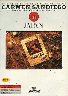 Carmen Sandiego in Japan – Hannin Sagashite Nihon Zenkok (Japanese: カルメン サンディエゴ イン ジャパン) is a 1989 spin-off[2] entry in the Carmen Sandiego franchise. It was developed and published by Broderbund Japan on two floppy disks for the NEC PC-9801 Series 525in.[3][4] The title functions as both an adventure game where players chase and capture Carmen, and an educational game where players learn about geography and history of Japan.[5] The title was released on November 21, 1989,[1] one of the few titles released under the Broderbund Japan brand alongside tabletop Shufflepuck Café (June 11, 1989) and shooter Wings of Fury (September 1989).[1]