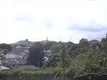 Carn Brea (Cornish: Karnbre)[1] is a civil parish and hilltop site in Cornwall, England, United Kingdom. The population of Carn Brea including Bosleake and Church Coombe was 8,013 at the 2011 census.[2] The hilltop site is situated approximately one mile (1.6 km) southwest of Redruth.[3] The settlements of Bosleake, Brea, Broad Lane, Carn Arthen, Carn Brea Village, Carnkie, Four Lanes, Grillis, Illogan Highway, Pencoys, Penhallick, Piece, Pool, Tolskithy, Tregajorran, Treskillard, Tuckingmill and West Tolgus are in the parish.[4]