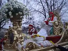 One of the most evocative Carnival of Italy is the Carnival of Satriano di Lucania with his three ancestral masks: the lant, bear and hermit. The show takes place in a small town of the historical Lucania geographic area and draws the attention of many press reviews at the international level: on top the italian director Michelangelo Frammartino filmed a greenery-clad hermit for a cine-installation Alberi (Trees) that shows the interdependence between man and nature. It was exhibited in New York City at the Museum of Modern Art (MoMa) in 2013.