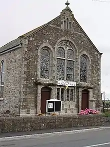 The village is built largely along the Great Flat Lode (a massive mineral trail that was extensively mined), and is surrounded by numerous derelict mine buildings, most of which were built by the mining magnate, Lord de Dunstanville and Basset. There is a Methodist chapel building at the centre of the village which closed in 2010. The Methodist congregation now meet at Carnkie Village Hall every Sunday at 10:30am and in May 2015 celebrated their 5th year since moving.