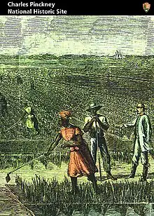 ![]() Enslaved Africans cultivating Carolina gold rice in South Carolina on Snee farm plantation. | |