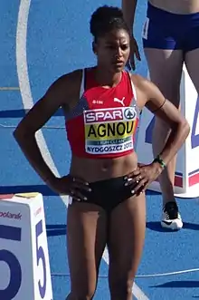 Caroline Agnou (born 26 May 1996) is a Swiss athlete who specialises in the heptathlon.[2] She competed at the 2015 World Championships in Beijing, China, finishing 22nd. Earlier that year she won the gold at the 2015 European Junior Championships.