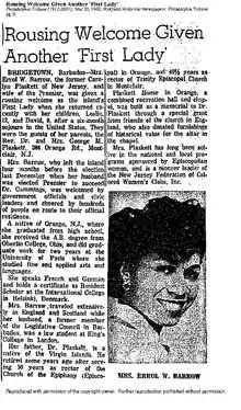 Newspaper article highlighting the First Lady of Barbados, Carolyn Plaskett.