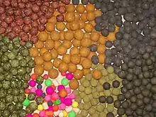 Boilies: carp bait made from a boiled paste. Popular baits include canned corn and homemade doughball concoctions in the USA. In the UK and Europe anglers commonly use a bait known as boilies, which are made from milk proteins, eggs and artificial flavors, these are then boiled in water hence the name boilies. Tiger nuts are also commonly used as a bait. In South Africa the most popular form of carp fishing is using a "mielie bomb", it is a spring shaped frame with crushed corn and maize pressed onto it. Baiting is often performed using baiting tools to increase accuracy and range.[3]