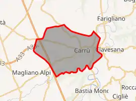 Carrù borders the following municipalities: Bastia Mondovì, Bene Vagienna, Clavesana, Farigliano, Magliano Alpi, Mondovì, and Piozzo. Luigi Einaudi, the first official republican President Italy, was born in Carrù. The town also saw the passage of the troops of Napoleone Bonaparte during his campaign in Italy.