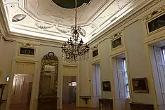 In the 18th century, D. Brites Maria Felizarda de Castro acquired a series of lots in order to build a great house for a residence and to be able to establish a factory in 1795.[1] The project was attributed to Joaquim da Costa Lima Sampaio, and architect who had previously worked on the building of the Hospital of Santo António and the Feitoria Inglesa (British Factory House), Neo-Palladian buildings designed by English architects based in Porto. This influence explains the style of the Palace, which follows the Neoclassical style that characterised late 18th and 19th-century architecture in Porto. The interior of the palace was decorated with stucco work attributed to the Italian Luis Chiari as well as wall paintings.