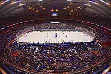 On November 22, 2014, the Syracuse Crunch of the American Hockey League set a new "United States Indoor Professional Hockey" record by playing in front of 30,715 fans at the Carrier Dome for the "Toyota Frozen Dome Classic".[20] Syracuse defeated the Utica Comets 2-1.[21] The (SUNY) Oswego State Lakers also hosted a game against the Utica Pioneers, establishing an NCAA record attendance for a Division III hockey game at 7,074 fans. Oswego tied Utica with a final score of 4-4.[22]