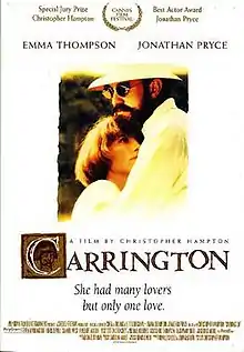 Carrington is a 1995 British biographical film written and directed by Christopher Hampton about the life of the English painter Dora Carrington (1893–1932), who was known simply as "Carrington". The screenplay is based on Lytton Strachey: A Critical Biography, the 1967-68 two-volume biography of writer and critic Lytton Strachey (1880–1932) by Michael Holroyd.