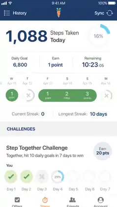 Carrot Rewards was a mobile app for residents of three Canadian provinces and one territory, allowing users to complete health questionnaires and track steps in exchange for rewards points.[1] The app was developed by Toronto-based Carrot Insights, a certified B corporation founded in 2015.[2] The app was first launched in British Columbia during March 2016, followed by Newfoundland and Labrador during June 2016, Ontario during February 2017, and the Northwest Territories only weeks before the app discontinued service in June 2019.[3] Users could choose during sign-up whether they want Aeroplan, Scene, Petro-Points, More Rewards or Drop rewards points.[4] RBC Rewards was also added as an option in June 2018.[5] Survey points were paid for by the organization which created the survey and step points were paid for by the provincial government where the user lives.[6] Carrot Rewards had also partnered with Heart & Stroke, Diabetes Canada and YMCA Canada.[7] The app was later expanded to include questionnaires and surveys on energy conservation and financial literacy.[8] In November 2018, an optional paid tier was added to the Carrot app, allowing users to receive bonus points for completing their goals.[9] Carrot shut down on June 19, 2019, after their "funds eventually ran out and [they] could no longer be in business".[10] However, in December 2019, social media accounts were updated with statuses saying “stay tuned”. In January 2020, Optimity bought Carrot Rewards and plans to relaunch the health app under a new model.[11]