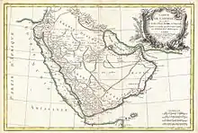 1771 decorative map of the Arabian Peninsula with a large decorative title cartouche in the upper right