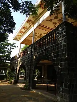The ground floor of the Don Hilarion Esquivel house were lined with stone flooring while the flooring of the second floor was made of wooden planks. The terrace, or azotea, was located at the rear portion of the house. Its windows were made of large glass panels, instead from the traditional capiz windows. Also, it has a protruding front room - similar to houses built during the American Colonial Period such as the Baldomero Aguinaldo Shrine in Kawit, Cavite. Below the front room are the porch, or porte cochere, and the main entrance.[1]