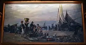 During the renovation process, the Torrescassana paintings were restored, a process carried out by the company Policromia in collaboration with the Generalitat de Catalunya’s Centre for the Restoration of Artefacts of Catalonia. The work consisted of cleaning the canvases, retouching the pictorial layer and reinforcing the mounts.[78] A number of ceramic tiles that had deteriorated were restored, a work carried out by Manel Diestre, of Sot’s Ceramics Studio, with the same stencilling technique as the originals.[79] The lamps in the house were also restored, a project led by the architects responsible for the restoration, alongside a number of specialists in various techniques such as wood, ceramics, metal, mural painting, fabric and stone.[80]