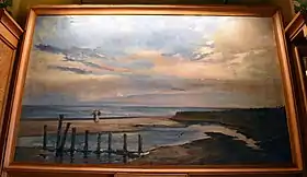 The way in which Vicens met Gaudí is unknown, although it is likely that they coincided in the cultural circles linked to the Renaixença that they both frequented.[15] Subsequently, Vicens and Gaudí became friends, and between 1880 and 1890 the architect often spent his summers at Vicens’ house in Alella. Gaudí made an angular wardrobe and a wood and metal corner fireplace with the initials MV (of Manuel Vicens) for the house, which are currently kept in Casa Vicens. As a result of Gaudí’s time there, he began a project to design an altarpiece in 1883 for the church of San Feliu in Alella, commissioned by the parish priest Jaume Puig Claret, but the project was never completed. A drawing in India ink on fabric paper is preserved, at a scale of 1:25.[16]