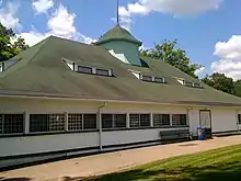 A New Castle square dancing group called the Paws and Taws began raising funds in the late 1970s to repair and restore the park's historic dance pavilion.[1] Community interest in reviving the park soon followed, and the Cascade Park Development Committee, a group of volunteers, organized in 1980. The group came up with a plan to restore the park, and it was agreed at that point that any future development at the park would reflect its Victorian roots.[1] During the 1980s, the park's old rides were removed, flowers and shrubs were planted, buildings were improved, public restrooms were built, and a playground was added. Local clubs like the Rotary Club, Lawrence County Garden Club, and the Lawrence County Bocce Ball League have also contributed in the park's restoration. Walking and hiking trails have also been added.[5]