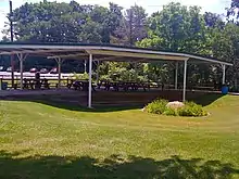 Cascade Park is a nature park and former amusement park in New Castle, Pennsylvania. The park was originally known as Big Run Falls when the area on which the park sits was purchased by Col. Levi Brinton in 1892.[1] Power companies at the turn of the twentieth century found they could make profits developing amusement parks, so in 1897, the New Castle Traction Company (later known as the Pennsylvania Power Company, or Penn Power) bought the property from Col. Brinton.[1] When the company held a contest for the park's name, ten-year-old Edwina Norris won ten dollars for submitting the name Cascade Park. The park opened on May 29, 1897.[2] The park was accessible not only via local trolley service but also via the Pittsburgh, Harmony, Butler and New Castle Railway, which later became the Harmony Short Line Motor Transportation Company' bus company.[3][4]
