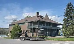 Cascadilla School Boathouse is a historic boathouse located in Stewart Park, in Ithaca in Tompkins County, New York. The boathouse lies on the south end of Cayuga Lake. It was built in 1894–1896 in the Shingle style. It was built by the Cascadilla School as a structure to store boats.[2] Crew rowing was extremely popular in the late 1800s, with the first FISA’s annual international event taking place in 1893. The boathouse has been in continuous use since then, for rowing storage, training, lessons and meetings of the Cascadilla Boat Club.