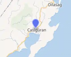 Casiguran, officially the Municipality of Casiguran (Tagalog/Kasiguranin: Bayan ng Casiguran; Ilocano: Ili ti Casiguran), is a 2nd class municipality in the province of Aurora, Philippines. According to the 2020 census, it has a population of 26,564 people. [3]