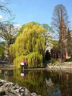 Park Casimir the Great is a fragment of the much larger park of the Order of Saint Clare in Bydgoszcz dating back to the first half of the 17th century.[1] Sisters of Poor Clares came to Bydgoszcz in 1615, and after the construction of the monastery (now one of the city museum buildings), the adjacent garden was created and organized. It can be accessed today through an alley at 3 May Street 3: its surface is approximately 3.5 hectares.[2] The original garden was not only ornamental, but also practical: a fish pond, a kitchen garden, an orchard with medicinal plants were part of it.[3]