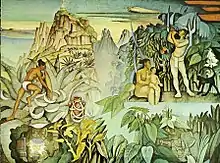 The Mexican painter and muralist Gerardo Murillo, better known as Dr. Atl, was among the best known guests. Dr. Atl would hold marathon conversations from three to four in the afternoon in the dining room with other visitors such as Mario Orozco Rivera and Benito Messeguer.[12] A fragment of Dr. Atl's mural, Architectural view of the City of Puebla, is preserved in the Chapultepec Castle.[22] Leonora Carrington lived in the casino while they built her house in Cuernavaca.