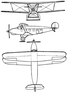 The Caspar C 35 Priwall (for the Priwall Peninsula) was a German airliner of the late 1920s, of which only a single example was built. It was a large, single-engine, single-bay biplane of conventional configuration with fixed tailskid undercarriage. The staggered, equal-span wings were braced with a large I-strut. Not only were the passengers seated within a fully enclosed cabin, but the flight deck was fully enclosed as well.