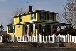 The Cassidy House stands in a residential area in Bridgeport's western Black Rock neighborhood, at tne northwest corner of Ellsworth Street and Crowther Avenue. It is two-story wood-frame structure, with a shallow pitch hip roof sporting broad boxed eaves, and a wraparound single-story porch. The porch supports are fine examples of period scrollwork and bracketing. The interior of the house retains many original period features, including flooring, fireplaces, and trim. A number of the windows still have original glass, and many doors have original porcelain doorknobs.[2]