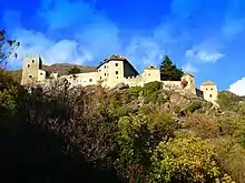 Juval Castle (German: Schloss Juval; Italian: Castel Juval [kaˈstɛl juˈval]) is a medieval castle located at the entrance of the Schnalstal, in the Vinschgau, above the village of Naturns in the comune of Kastelbell-Tschars at around 1000 meters above sea level, in South Tyrol, northern Italy. It derives its name from the Latin name of the mountain, Mons Jovis (mountain of Jupiter).