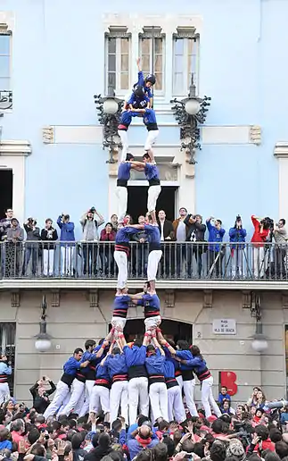 The Castellers de la Vila de Gràcia (Catalan pronunciation: [kəstəˈʎez ðə lə ˈβilə ðə ˈɣɾasiə]), created in 1996, are a colla castellera, based in Vila de Gràcia that makes human castles. They made their first public presentation in 1997 supported by the groups Castellers de Terrassa, the Castellers de Sants and the Castellers de Sant Andreu de la Barca. The colour of their shirts is navy blue.[1]