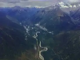 Castle Creek, also known locally as Cottonwood Creek, is a tributary of the Fraser River in the Robson Valley region of British Columbia. Castle Creek flows from its source at Castle Creek glacier in the Cariboo Mountains to its confluence with the Fraser near McBride. The Castle Creek glacier has seen major retreats in the late 2010s, receding by an average of 15 metres a year.[1] The creek provides hydroelectricity through a "run-of-the-river" instream generating station run by BC Hydro, which provides 34 gigawatt hours of power.[2]