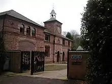 An extensive area of parkland stretches up the hill to the west of the house. Some of the trees planted by Joseph Stubs are still present, although coming to the end of their lives. The formal garden is still there and a garden for the disabled has been constructed by Frodsham Round Table. In the park there are play facilities for children. The coach house has been developed into the Castle Park Arts Centre which has a small café and showrooms for the arts.[1] Other outbuildings are now used as offices for small businesses.[5] The park and gardens have been designated at Grade II in the National Register of Historic Parks and Gardens.[6][7]