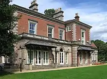 In 1851 it was bought by Joseph Stubs of Warrington, a manufacturer of engineers' tools. He started to develop and extend the house and outbuildings and commissioned Edward Kemp to lay out the woods and gardens, which comprised an area of more than 24 acres (97,000 m2).[1] The architect for the rebuilding was probably T. M. Penson. Its style is "reserved Italianate".[2] Stubs did not live to see the work completed as he died in 1861. It was bought by auction for over £9,500 (equivalent to £910,000 in 2020)[3] by Edward Abbott Wright, a Quaker cotton manufacturer from Oldham. The house then came to be known as Castle Park. The Wrights had five children, a boy who died at the age of 14, and four girls. Edward's wife died in 1868 and Edward continued to live in the house, commuting for his business and political interests from Frodsham railway station, until he died at the age of 83 in 1891. Following this, Edward's two unmarried daughters, Harriet and Emily continued to live in the house until the last remaining daughter, Harriet died in 1931.[1]