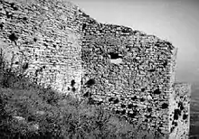 Originally the castle had four towers and a rectangular trapezoid plan.[3] The only remaining tower is the donjon or "Torre maestram" (improperly called "Saracen tower"[4]), that initially had three floors: you could enter it through a wooden ladder at the first floor. This tower is located on the north-west[3] and had a rectangular plan with walls 2.2 m thick. It was the most important in the castle because, thanks to its impressiveness and position, this was a point of strategic sighting as they could check the road leading to the castle, as far as the entrance door,[3] situated on the south-west side.[5]