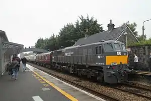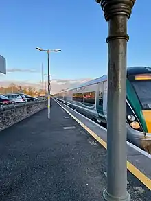 The station is on the Dublin to Westport Rail service. Passengers to or from Galway travel to Athlone and change trains. Passengers to or from Ballina and Foxford travel to Manulla Junction and change trains.[2]