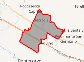 Castrocielo borders the following municipalities: Aquino, Colle San Magno, Piedimonte San Germano, Pontecorvo, Roccasecca.