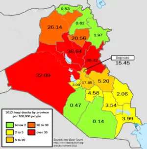 - "Documented civilian deaths from violence". Iraq Body Count. Retrieved 9 January 2015.