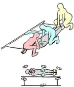 It is also possible to use a roll-and-lift method, or "spoon" lifting (relevage à la cuiller in French), with three people: