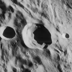 Catalán is a small lunar impact crater that lies almost along the southwest limb of the Moon. At this position the crater is ill-suited for observation from the Earth as it is viewed almost from the side, and visibility is subject to libration effects. It lies to the west of the somewhat larger crater Baade, and south-southeast of Graff. This region is located in the outer southeastern part of the skirt of ejecta that surrounds the Mare Orientale impact basin, and the nearby surface is rugged and streaky. This crater is named after the Spanish scientist Miguel Antonio Catalán Sañudo (1894–1957) for his contributions to spectroscopy, an important exploratory tool in astronomy.