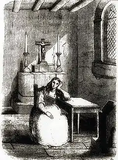 It is also said that she beat and stabbed a former lover, Enrique Enríquez de Guzmán of the Order of Malta, on the grounds that he had played with her feelings (since he had refused to give her a cross, a symbol of his nobility, in exchange for a kiss). Enríquez even dared to brag about his love affairs to the friar Pedro de Figueroa, Catalina's platonic love, and publicly boasted about taking advantage of a "loose" woman, referring to Catalina.[5]