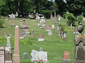 Cataraqui Cemetery is a non-denominational cemetery located in Kingston, Ontario, Canada. Founded in 1850, it predates Canadian Confederation, and continues as an active burial ground.[1] The cemetery is 91 acres in a rural setting with rolling wooded terrain, ponds and watercourses.[2] More than 46,000 individuals are interred within the grounds, and it is the final resting place of many prominent Canadians, including the burial site of Canada's first prime minister, John A. Macdonald.[3] The Macdonald family gravesite, and the cemetery itself, are both designated as National Historic Sites of Canada.[4][5][6]