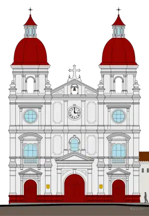 The first church dates from between 1662 and 1668, and it became a center of evangelisation for the first priests and missionaries arriving from Europe. 125 years later, on March 8 of 1793, the then bishop of Popayán, Ángel Velarde y Bustamante, made a pastoral visit to the church, and was affected by what he saw as evil spirits in the church.[1] Obtaining consent, he saw that the old temple was demolished and asked for administrative and communal funding and support to erect a new church in its place. The bishops Jose Pablo de Villa and Jose Felix de Mejía would be in charge to administer these resources, in addition to the directing and handling the work of the new parochial church.[1]