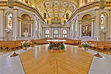 The top of the walls of the inside of the Cathedral include quotes from the Vulgate about Joseph: