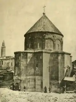 The Cathedral of Kars, also known as the Holy Apostles Church (Armenian: Կարսի Սուրբ Առաքելոց եկեղեցի, Karsi Surb Arakelots' yekeghets'i; Turkish: Aziz Havariler Kilisesi[8] or "Church of the Twelve Apostles" 12 Havariler Kilisesi)[1][7][9] is a former Armenian Apostolic church in Kars, eastern Turkey. Built in the mid-10th century by the Armenian Bagratid King Abas I (r. 928–953), it was converted into a mosque in 1579. In the 19th and early 20th century it was converted into a Russian Orthodox and later Armenian cathedral. In 1993 it was again converted into a mosque and is called Kümbet Mosque[3] (Turkish: Kümbet Camii, literally "domed mosque").[10] It currently comprises part of a larger Islamic complex that includes the Evliya Mosque, the biggest mosque in Kars.[11]