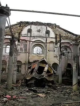 After the Kosovo War (1999), territory of Kosovo including Prizren, was placed under the administration of the United Nations Interim Administration Mission in Kosovo. During the unrest of 2004, Serbian Orthodox Cathedral of Saint George in Prizren was looted and set on fire by local Muslim extremists.[14] Only after many difficulties, the cathedral was gradually restored during next few years. On 26 December 2010, newly elected Serbian Orthodox bishop Teodosije Šibalić was enthroned in the restored cathedral in Prizren, by the Serbian Patriarch Irinej.[15] In July 2012, the cathedral was visited by Ban Ki-moon, the Secretary-General of the United Nations.[16] In March 2016, British royal delegation, lead by Charles, Prince of Wales, also visited the cathedral.[17]