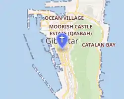 ![]() Main entry of the Cathedral of the Holy Trinity in Gibraltar viewed from Cathedral Square, depicting its Moorish-style horseshoe arches. | |