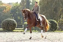 Catherine Durand-Henriquet is a French equestrian. She was twice selected for the Equestrian at the Summer Olympics. She brought the first Iberian horse to International and Olympic levels[1] and was also the first rider in the Versailles tradition to ever ride in the Olympic Games. She was national dressage champion multiple times. Together with her husband, famous equestrian and dressage master Michel Henriquet, she wrote a number of major dressage and horse training books and released a young horse training DVD series showing how the Henriquets take young horses from their first time under the saddle to the Grand Prix. Catherine Henriquet still actively shows Hanoverian horses and Lusitano horses at Grand Prix level and has trained dozens of horses to the Grand Prix. She currently rides two horses on the Big Tour: 18.7 hands Hanoverian gelding Lexus Gold and 15.7 hands Lusitano gelding Diabeau du Coussoul. Henriquet is also a retired dermatologist and always maintained professional practice while showing internationally. Having a full time profession aside from riding sometimes got in the way of being able to attend international shows and selections.