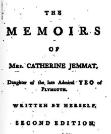 She was born Catherine Yeo. Her father, the Royal Navy captain John Yeo (d. 1756), was at sea for long periods. She was left to the care of an immature and neglectful stepmother. Catherine was educated for a while at a boarding school. She eventually sought escape from her father in a hasty marriage to a Plymouth silk mercer called Jemmat. Jemmat proved a drunkard who was deep in debt and who was soon bankrupt.[2] Captain Yeo, who retired with the rank of Rear-Admiral, refused to support her or the daughter she had by Jemmat.[3]